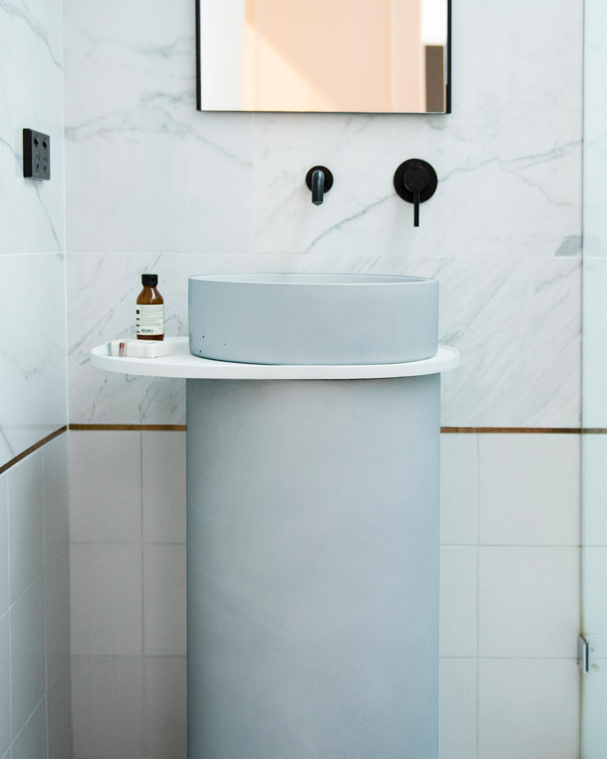 This unique piece stands proudly in your bathroom in cylinder form. Featuring a bowl basin on top, all concrete pedestals are available in your choice of all Nood colour. Get your freestanding, modern basin, with or without a concrete side tray for your toothbrush and soap. You can choose from all colours for your basin, tray and cylinder base. Modular bathroom concrete is here.